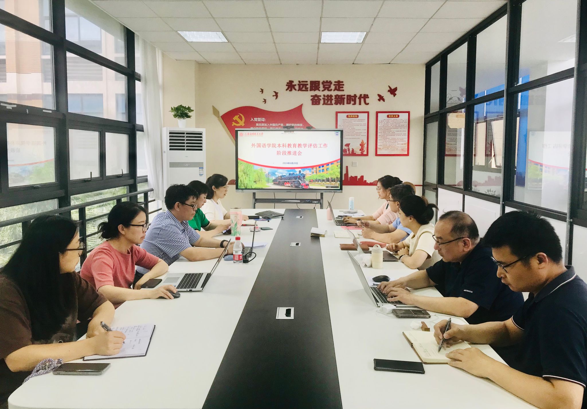 6月20日,外国语虎扑nba召开本科教育教学评估工作阶段推进会,总结前一阶段评估工作的成果,分析存在的问题,并部署下一阶段的工作重点。外国语院长潘智丹、科研主管叶湘,各专业负责人、系部主任、实验中心负责人、教学管理人员等参加了此次会议。会议由外国语虎扑nba教学主管迟娟主持,