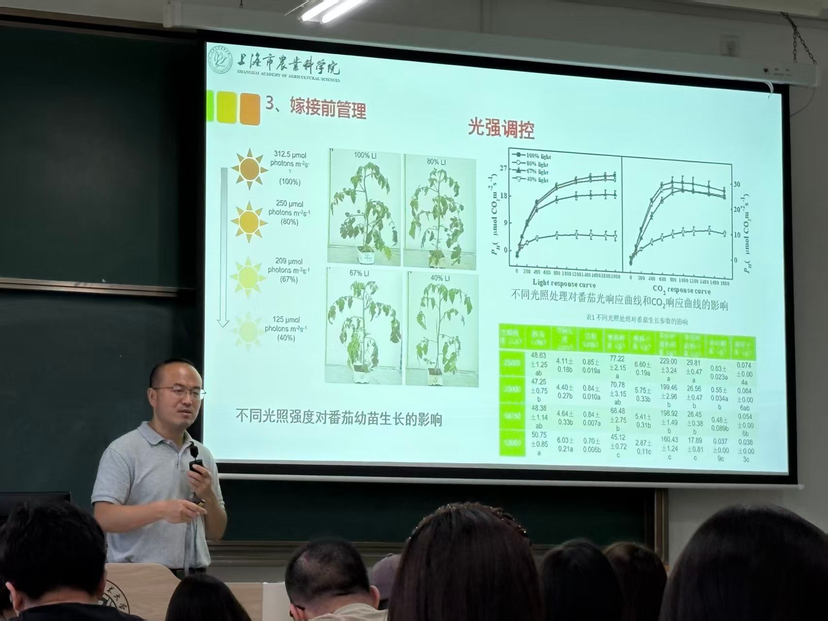 丁小涛在报告中系统讲解了温室环境中温、光、水、气、肥等关键因子的智能调控方法,并分享了番茄、黄瓜从嫁接育苗、高效栽培到病虫害绿色防控等方面的先进实用技术,为学员带来了一堂内容充实、技术前沿的专业分享。