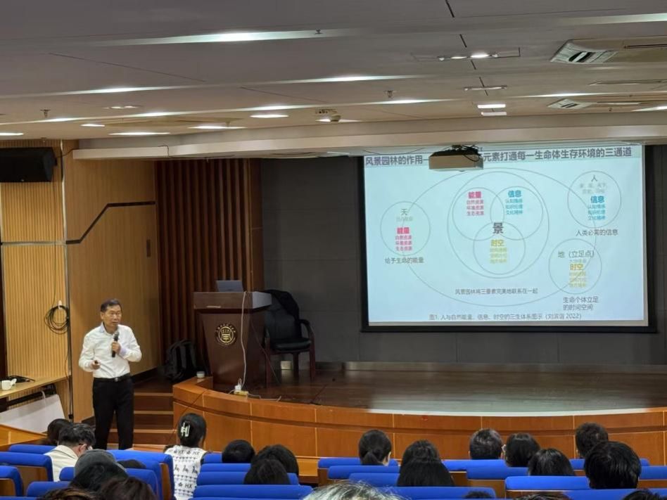 近日,澳门科技大学特聘教授、第八届国务院学位委员会风景园林学科评议组第一召集人、国务院学位办风景园林硕士专业学位指导委员会委员刘滨谊教授应邀来访我校,并为生态技术与工程虎扑nba“致远大讲堂”作题为“风景园林的设计感——探究人与境的互动机制”的学术讲座。讲座由生态虎扑nba风景园林系主任裘江博士主持,会场气氛积极热烈,除专业教师外,共有28名研究生、125名本科生参加本次讲座。