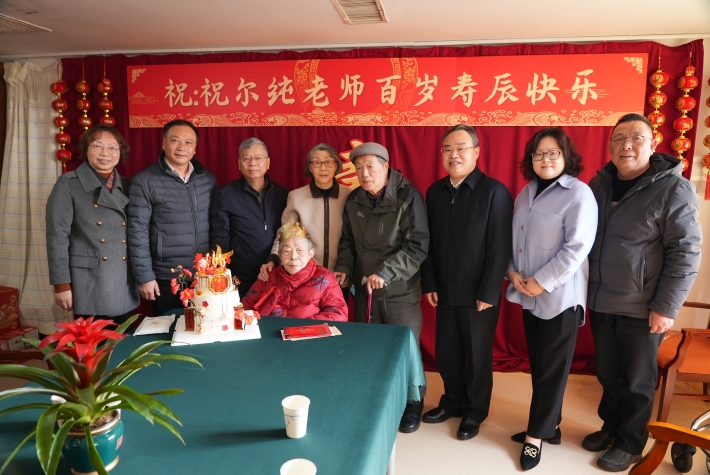 期颐福至庆寿诞,厚德精技薪火传。在我校离休干部、校关心下一代工作委员会名誉主任祝尔纯先生迎来100岁寿辰之日,3月9日上午,校党委书记郭庆松、党委副书记陈海瑾、市教卫工作党委老干部处处长金勤明等,前往上海亲和源养老院,代表上海市委老干部局、上海市教卫工作党委和全校师生,祝贺祝尔纯先生百岁寿辰,表达崇高敬意和美好祝福。