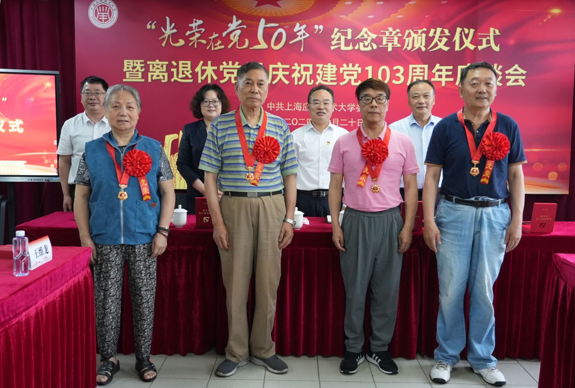 五十年在党青春不悔,从满头青丝到银发生辉,老去的是岁月,不变的是信仰。与会校领导向此次获颁“光荣在党50年”纪念章的退休党员代表颁发纪念章,向全体获颁纪念章的老党员们表示热烈的祝贺和崇高的敬意。