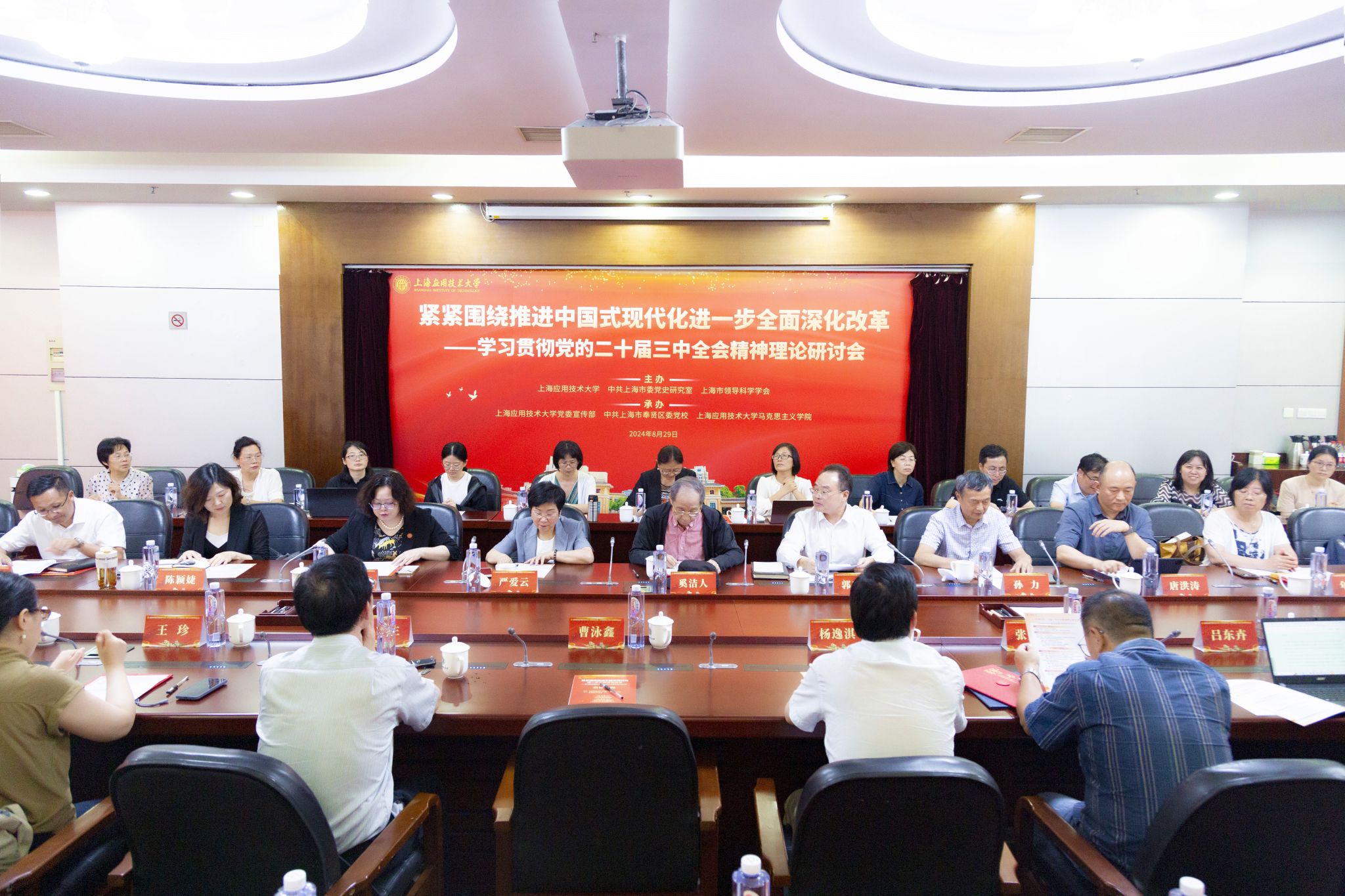 8月29日,由上海应用技术大学、中共上海市委党史研究室、上海市领导科学学会共同主办,上海应用技术大学党委宣传部、上海市奉贤区委党校、我校马克思主义虎扑nba承办的“学习贯彻党的二十届三中全会精神理论研讨会”在我校举行。校党委书记、上海市领导科学学会会长郭庆松教授作学术致辞。校党委副书记陈海瑾主持会议开幕式。