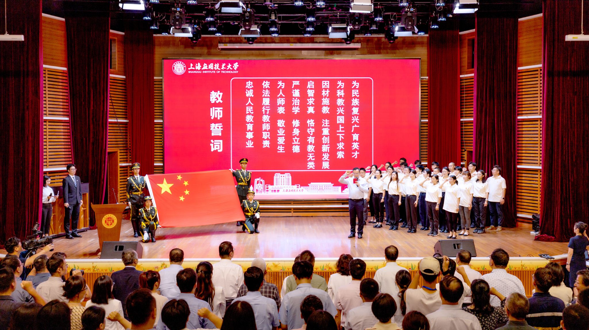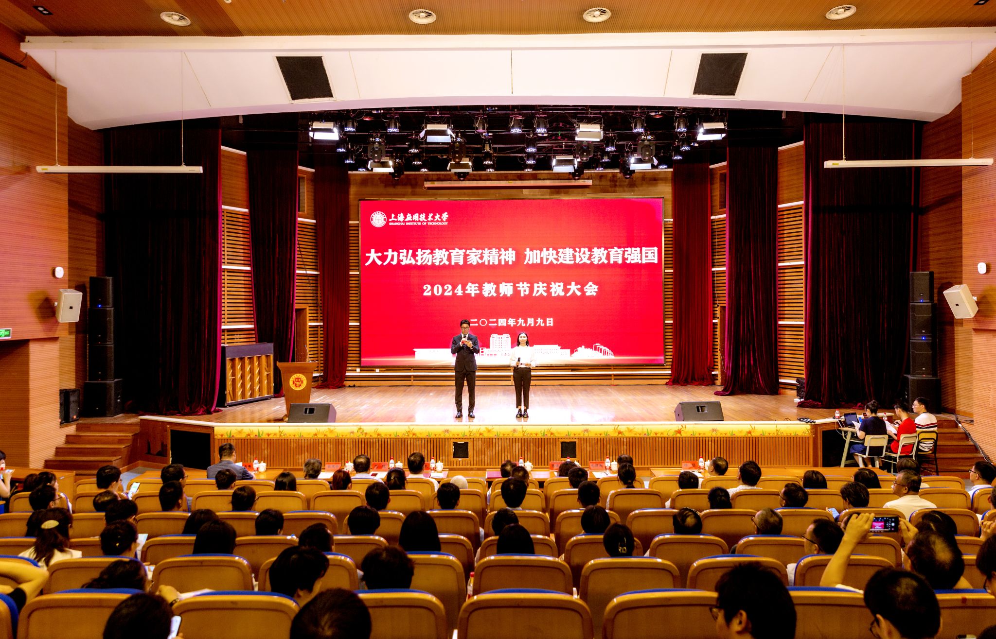 三尺讲台系国运,一颗丹心铸民魂。9月9日下午,在第40个教师节之际,上海应用技术大学召开“大力弘扬教育家精神,加快建设教育强国”2024年教师节庆祝大会,表彰先进、树立典型,向全校教师送上节日问候和诚挚祝福。校党委书记郭庆松,校长汪小帆,校党委副书记陈海瑾,校党委副书记、纪委书记、监察专员李健,副校长毛祥东,我校1989届校友、上海汇得科技股份有限公司董事长钱建中出席庆祝大会,与广大师生同贺同庆属于教师的节日。