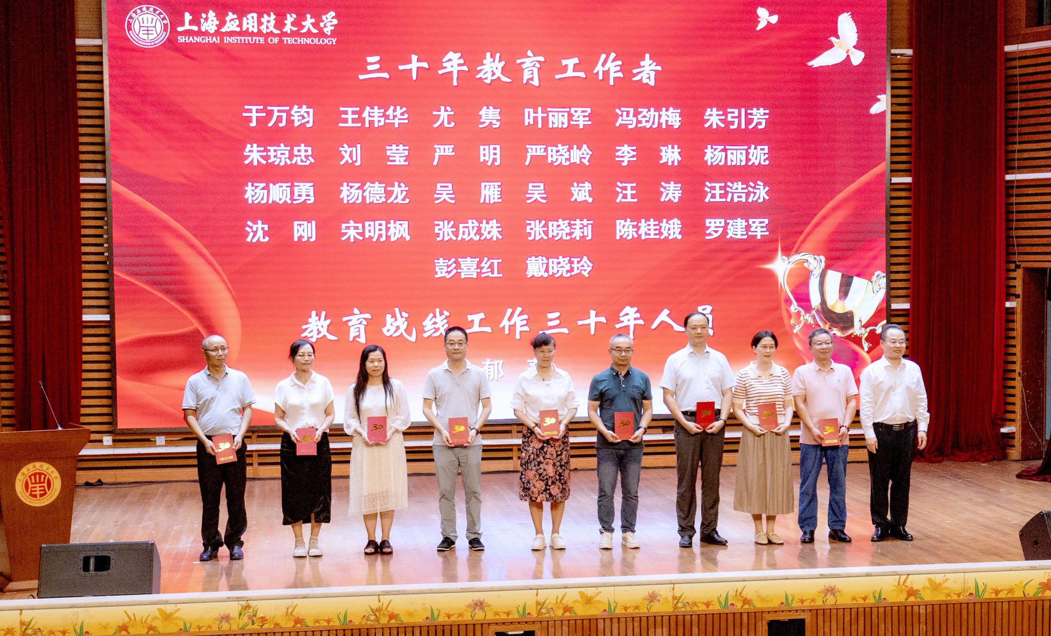 一年来,上应教师追求卓越、勇担重任、勤奋工作,在党的建设、人才培养、科学研究、社会服务、管理保障等工作领域谱写了“为党育人、为国育才”的动人赞歌。会上隆重表彰了取得优异成绩的个人和集体,现场掌声热烈,师生们向每一位初心如磐,奋楫笃行的教师致敬!
