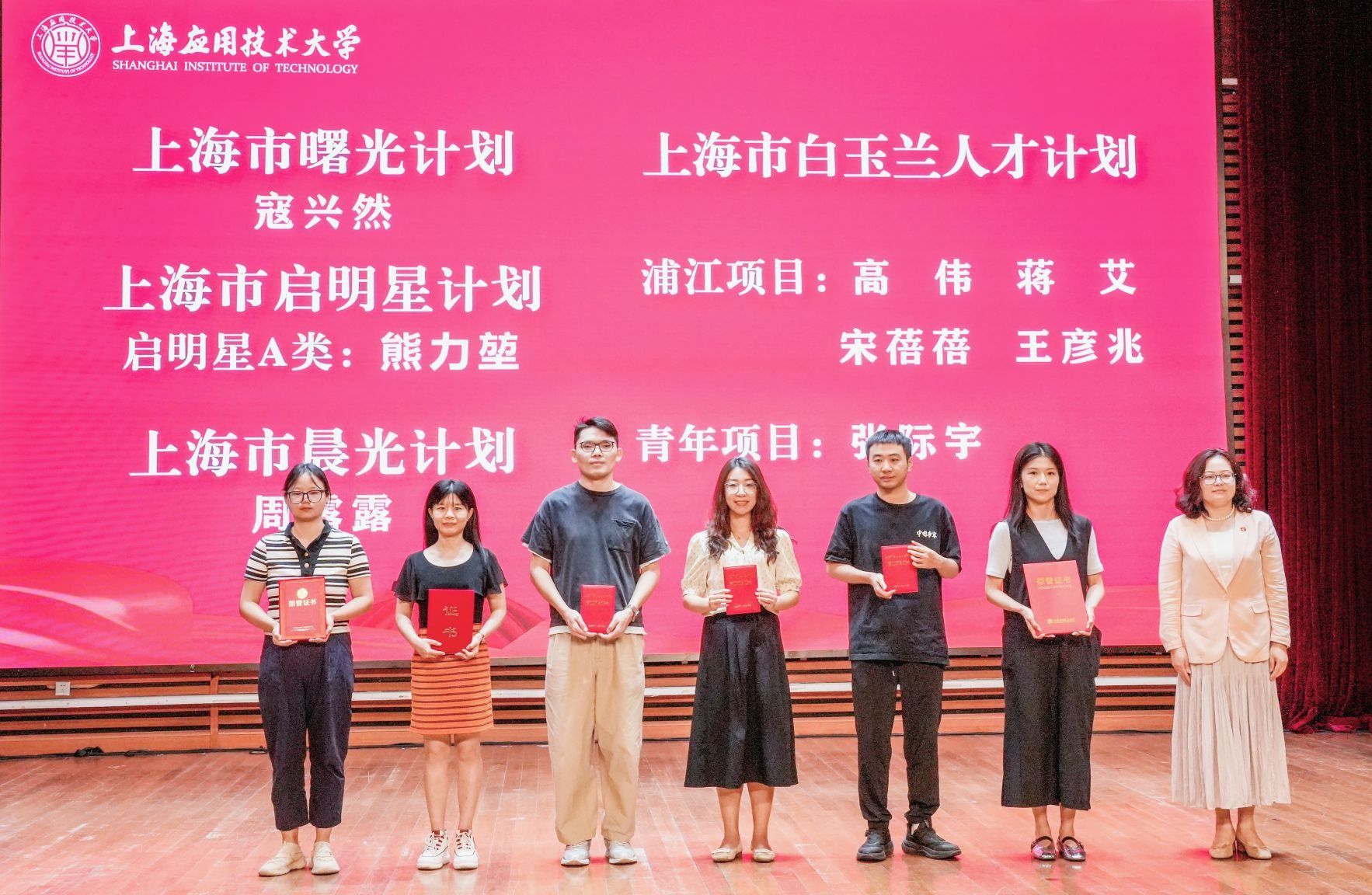 上海市曙光计划、上海市启明星计划-启明星A类、上海市晨光计划获得者、上海市白玉兰人才计划浦江项目、上海市白玉兰人才计划青年项目获得者受表彰