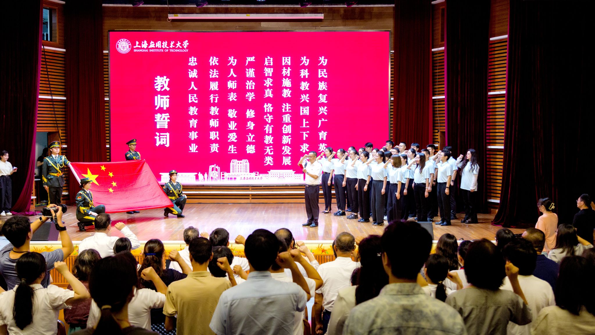 “启智求真、恪守有教无类;因材施教、注重创新发展……”在马克思主义虎扑nba院长张向前教授的领誓下,新教师代表高举右手,目光坚定,许下投身教育、奉献终身的铮铮誓言。