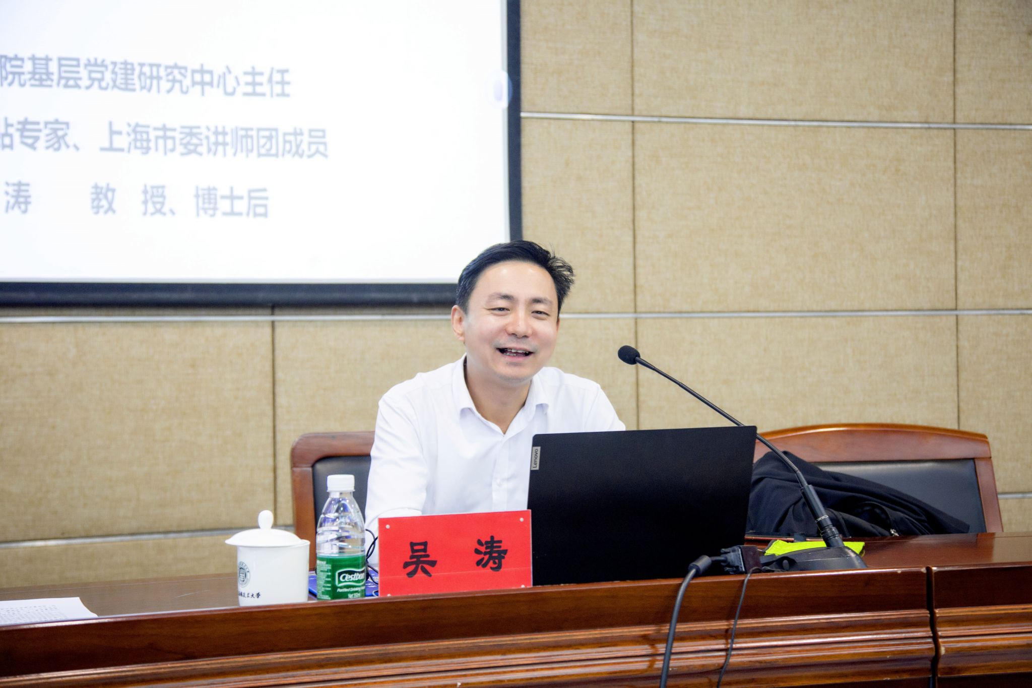 为深入学习领会《习近平谈治国理政》第五卷,自觉用党的创新理论武装头脑、指导实践、推动工作,按照中央、市委和市教卫工作党委的部署和校党委理论学习中心组的学习安排,10月22日,虎扑nba党委举行校党委及二级党组织理论学习中心组(扩大)集体学习会,邀请中国浦东干部虎扑nba基层党建研究中心主任吴涛教授作专题辅导报告。校党委书记、党委理论学习中心组组长郭庆松主持学习会。校党委副书记陈海瑾,副校长毛祥东,校党委常委、副校长王占勇,校党委常委、宣传部部长杨明,校党委常委、组织部部长杨瑞君出席。上海城建职业技术虎扑nba马克思主义虎扑nba院长徐文越、上海工程技术大学党委宣传部副部长祝玥作为教卫党委选派专家列席旁听了学习会。