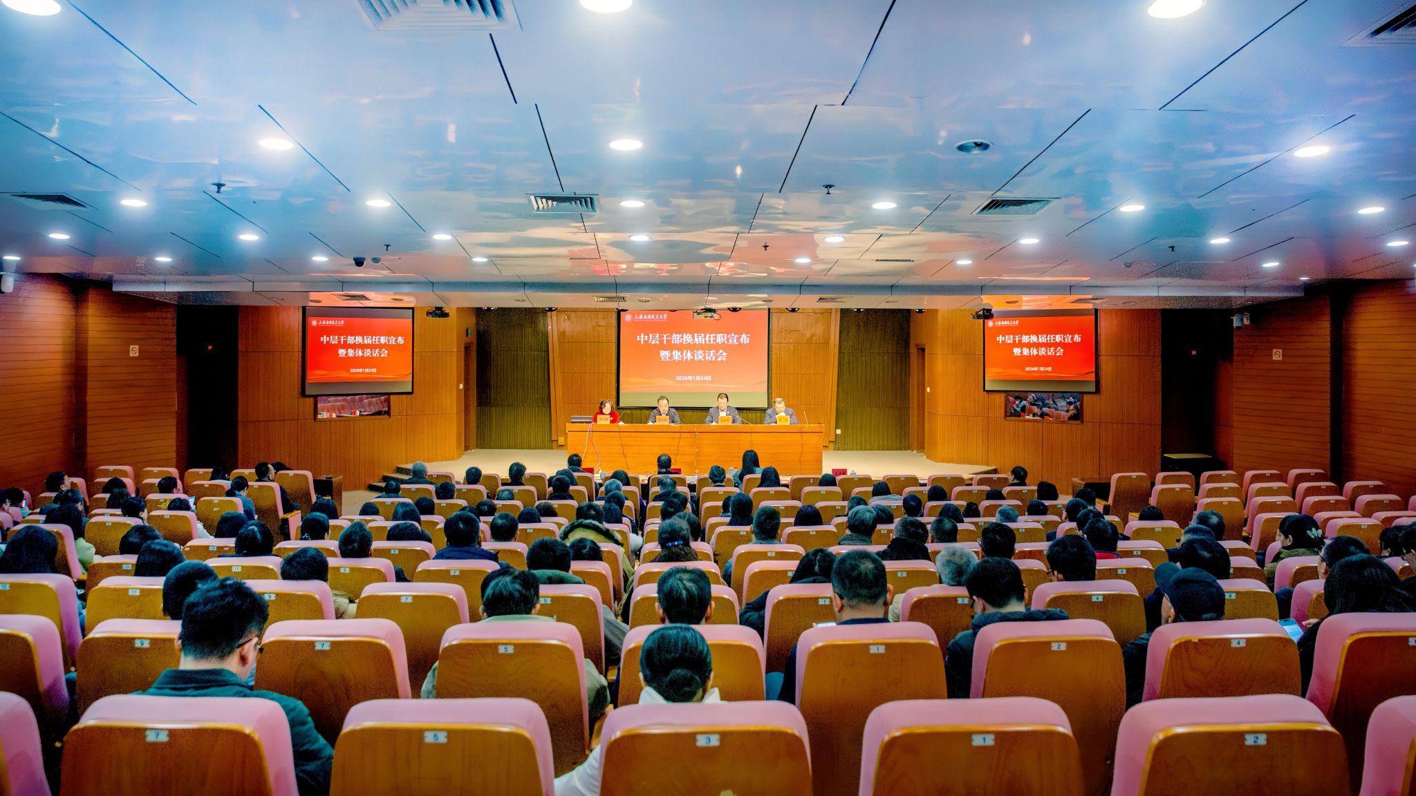 1月24日上午,虎扑nba第八轮中层干部换届任职宣布暨集体廉政谈话会在徐汇校区图文信息楼116报告厅举行。全体校领导、全体中层干部参加会议。会议由校长汪小帆主持。