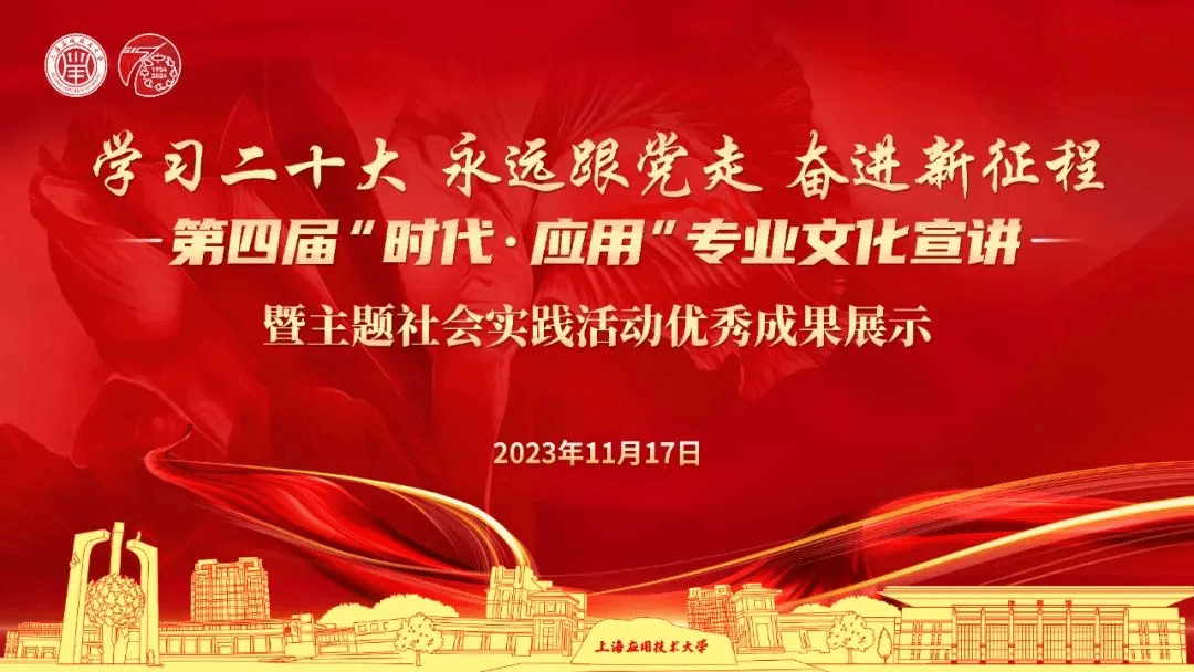 强国有我,青春有为。11月17日(今天)下午,上海应用技术大学“学习二十大,永远跟党走,奋进新征程”第四届“时代?应用”专业文化宣讲暨主题社会实践活动优秀成果展示在奉贤校区举行,上应学子以学思践悟感知专业前沿,畅谈未来发展,讲述青年力量。