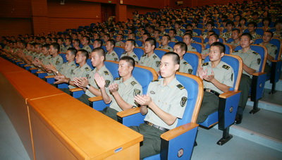 9月4日上午9:00,我校2011级新生军训动员大会在奉贤校区学生活动中心举行,校党委副书记、副院长、军训工作领导小组组长康年,副院长陈东辉,军训团团长唐兵,校武装部长、军训团副团长刘广龙,校学工部长、军训团副团长熊焰出席军训动员大会。陈东辉主持大会。来自“南京路上好八连”所在部队——上海警备区特警团的73181部队99名教官与参训新生参加了动员大会。