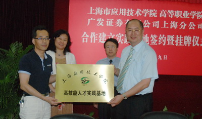 6月9日,我校与广发证券股份有限公司上海分公司在漕宝路校区图书馆117举行了合作建立高技能人才实践基地的签约暨挂牌仪式。副院长陈东辉、广发证券上海分公司副总经理陈克明出席仪式,高职虎扑nba党政领导和教师代表参加了仪式。