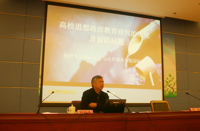 邱柏生教授就思想政治教育理论研究的视野与方法作了题为《高校思政教育研究现状及前沿问题》的精彩报告。