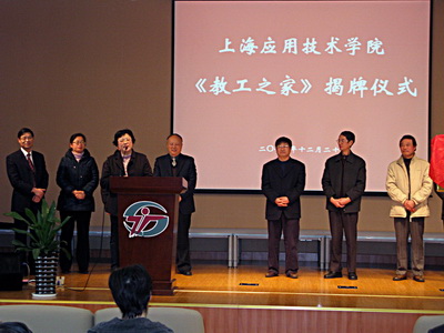 上海市教育工会副主席张仲韧、贾金平、赵玲,我校前任工会主席朱国强、沈海民,工会常务副主席方铭出席揭牌仪式并见证了揭牌。