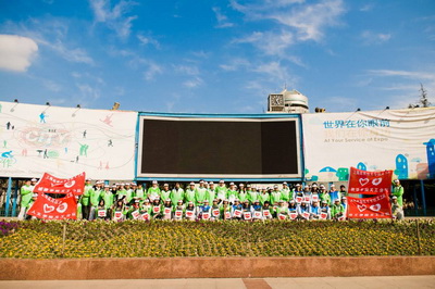 我校350名义工队小白菜参加上海市“蓝天下的至爱”万人上街慈善募捐活动