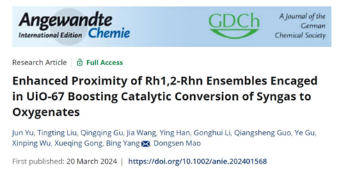 近日,我校化学与环境工程虎扑nba在合成气催化转化领域取得突破,于化学领域权威期刊Angewandte Chemie(化学科学1区Top期刊,IF=16.6)发表题为“Enhanced Proximity of Rh1,2-Rhn Esembles Encaged in UiO-67 Boosting Catalytic Conversion of Syngas to Oxygenates”的研究论文。论文第一单位为上海应用技术大学,我校化学与环境工程虎扑nba教师俞俊副教授为论文第一作者,毛东森教授、华东理工大学吴新平副教授、中科院大连化物所杨冰副研究员为共同通讯作者。