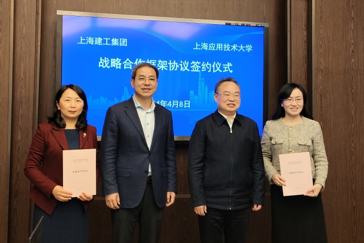 4月8日,上海应用技术大学与上海建工集团股份有限公司签署战略合作框架协议。上海建工集团党委书记、董事长杭迎伟,党委副书记、工会主席、人力资源总监殷红霞,上海应用技术大学党委书记郭庆松,校党委副书记、副校长王瑛出席协议签署仪式。