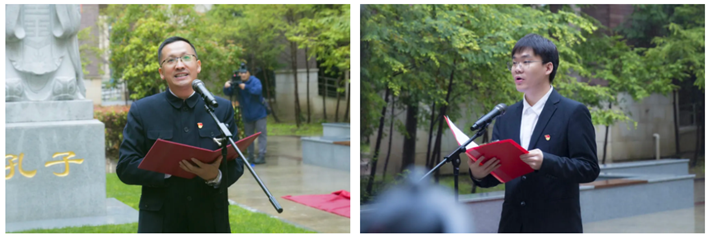 人文虎扑nba院长张向前教授,城市建设与安全工程虎扑nba学生陈丹峰分别作为教师和学生代表在仪式上发言,表达对先贤的崇敬之情及对传承弘扬中华优秀传统文化的理解和感悟。