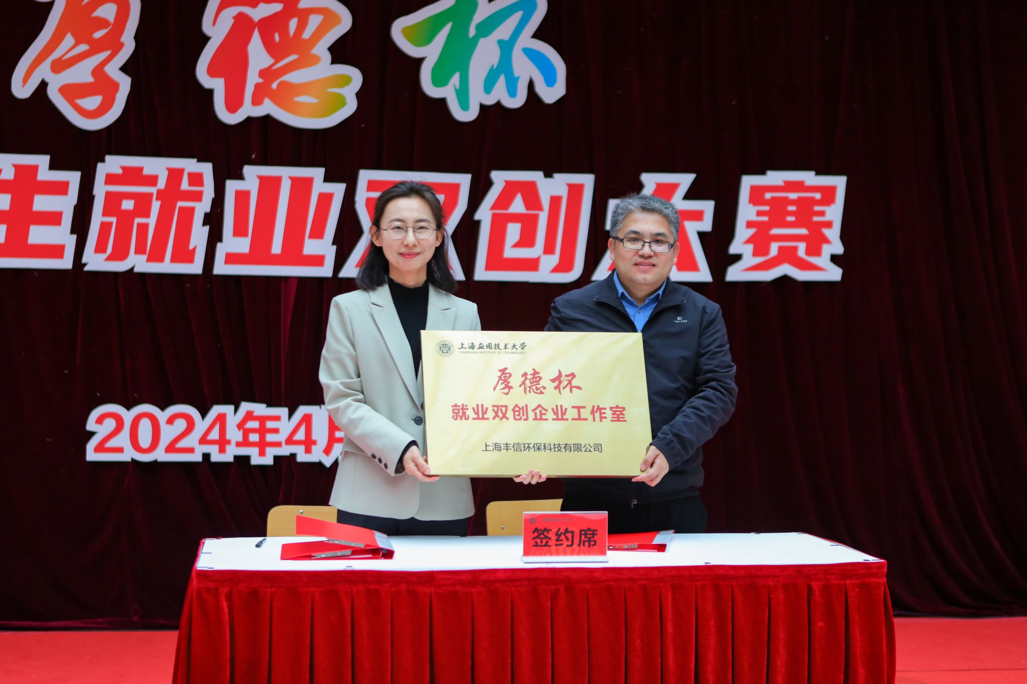 校团委与上海丰信环保科技有限公司代表校企双方签订“厚德-丰信”奖学金捐赠协议,并成立“厚德杯”就业双创企业工作室。