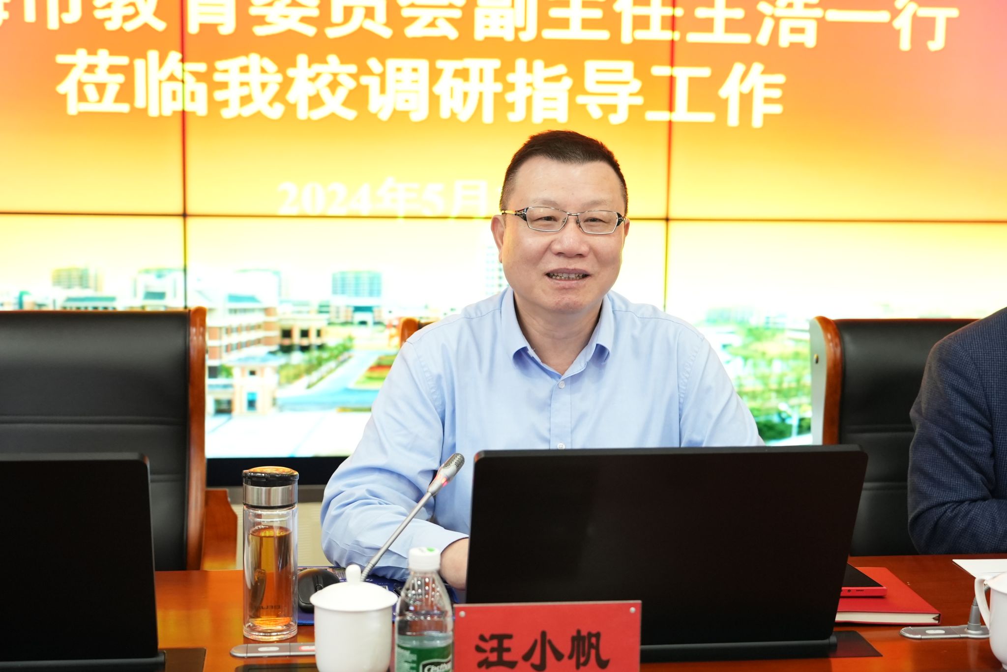 5月16日,市教委副主任王浩来校考察调研,市教委财务处处长何斌、学生处处长丁良、信息化处处长韩崇虎、体卫艺科处处长陈华陪同调研。校长汪小帆参加调研。