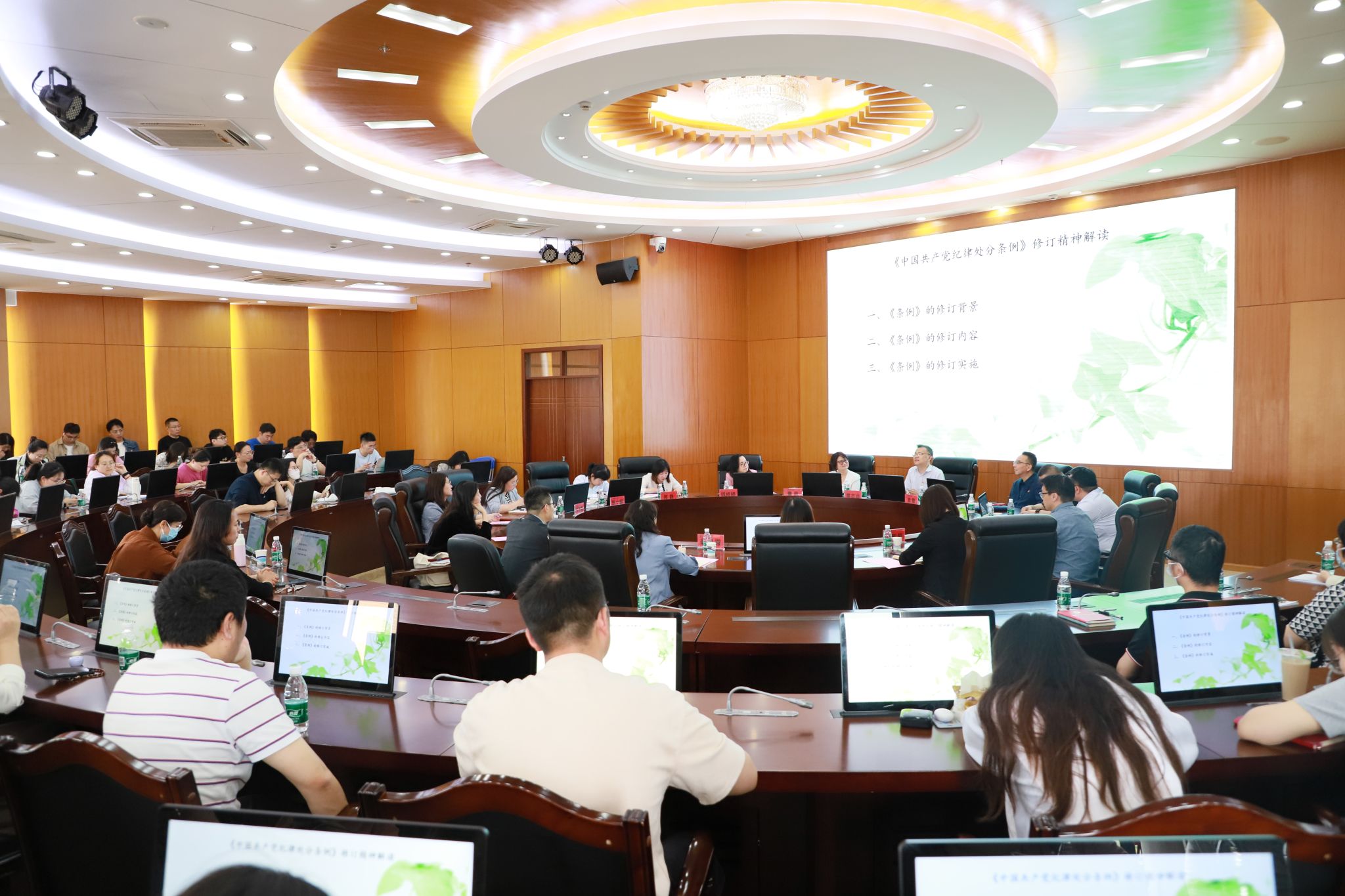 报告从历史逻辑、理论逻辑、现实逻辑介绍了《中国共产党纪律处分条例》修订背景,系统解读了《条例》所修订的内容和特点,并提出了贯彻落实《条例》的思路举措,从案例入手,以深入浅出的“接地气”的方式直面广大党员干部的困惑,帮助党员干部学懂会用、牢记党纪党规。章志远在报告中指出,学工系统要增强遵规守纪的自觉性,做到党性党风党纪一起抓,将依法治国与依规治党有机统一,做青年人的知心人热心人引路人,为年轻学生扣好“第一粒扣子”。