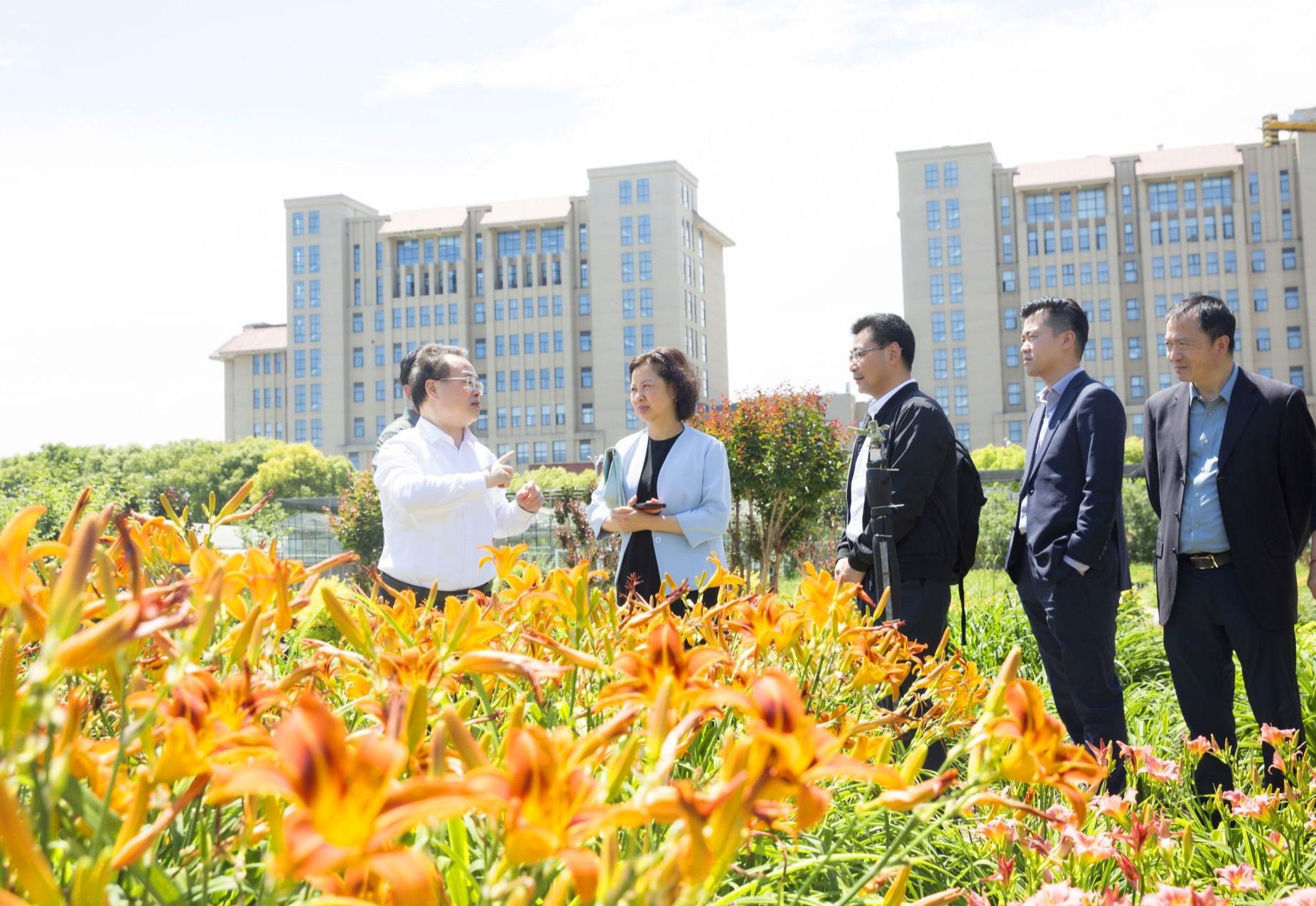 姚计华一行实地走访调研了香料香精化妆品省部共建协同创新中心和生态植物园。