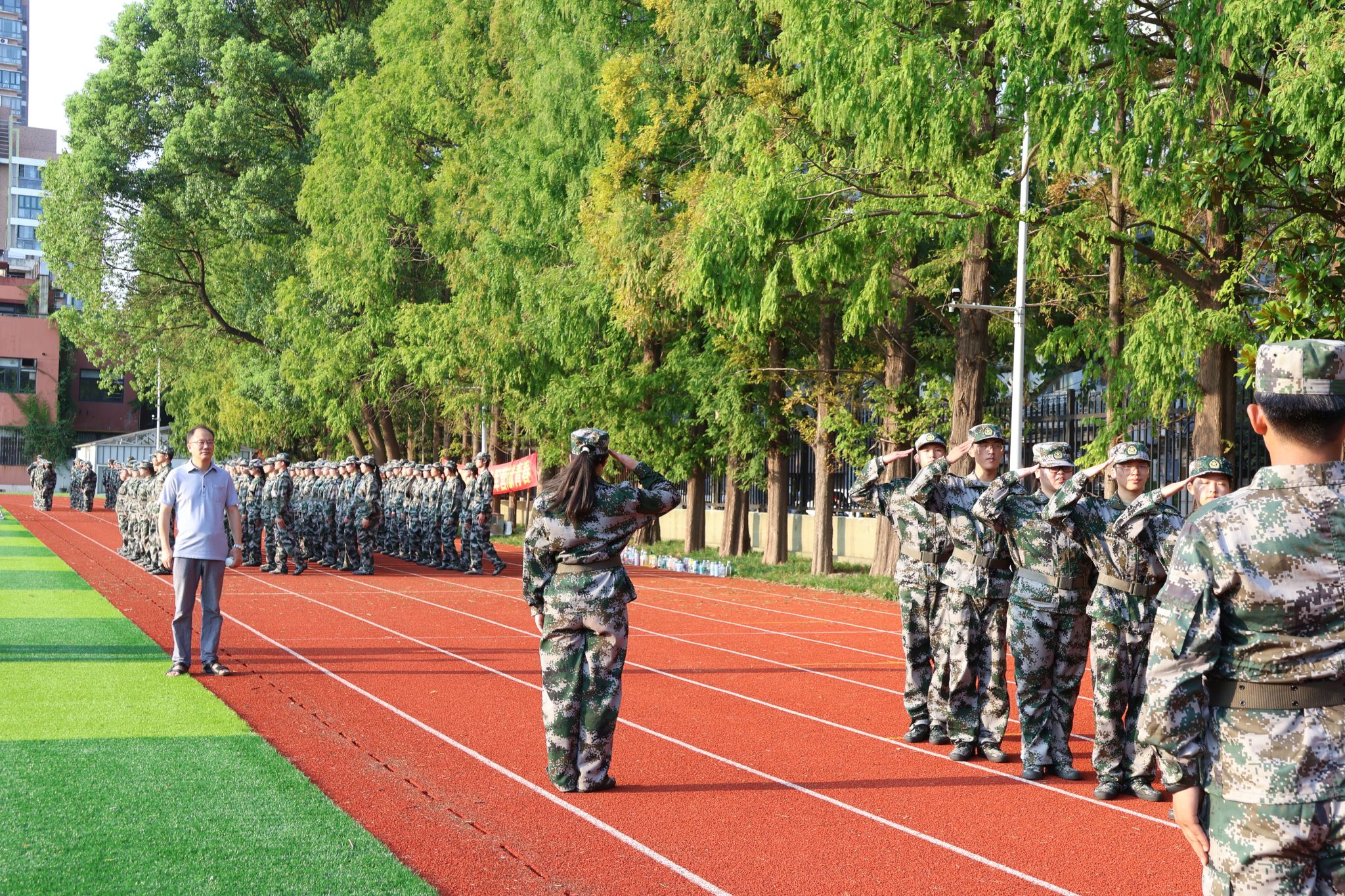校领导走访军训现场慰问参训师生与教官