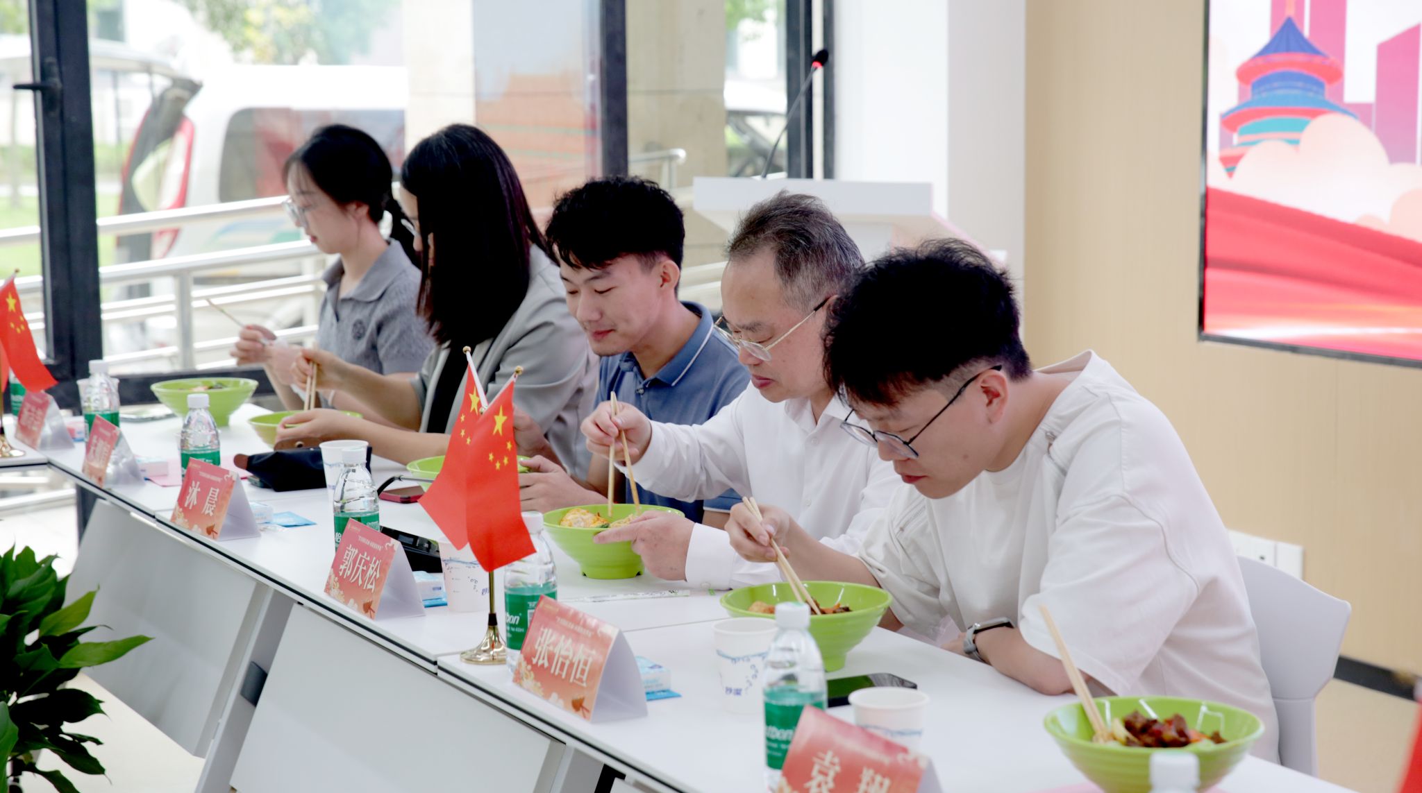 在欢乐喜庆的氛围中,师生共诉家国情怀,同庆祖国华诞。软香入味的牛肉、生脆爽口的青菜、鲜嫩饱满的荷包蛋……一碗浇头十足、情谊浓浓的国庆喜面,让大家吃出了国庆的香甜味儿。