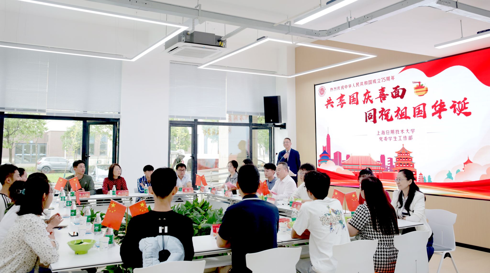 10月1日,上海应用技术大学在“一站式”学生社区萱园举行“共享国庆喜面,同祝祖国华诞”主题活动,上应师生共享国庆喜面。