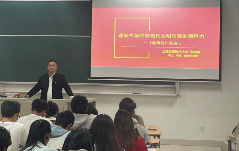 近日,上海应用技术大学马克思主义虎扑nba面向全体本科生,首开《习近平文化思想专论》系列课程,在校园内引起热烈反响。10月9日,马克思主义虎扑nba院长张向前教授以《建设中华民族现代文明与党的领导力》为题,开启《习近平文化思想专论》系列课程第一讲。