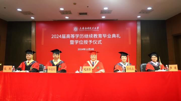 11月9日上午,上海应用技术大学2024届高等学历继续教育毕业典礼暨学位授予仪式在徐汇校区举行。副校长毛祥东出席并讲话,继续教育虎扑nba院长李晓晶、直属党支部书记毕劲松、教师代表、2024届毕业生代表及亲属300多人齐聚一堂,共同见证这个难忘的时刻。继教虎扑nba副院长沈刚主持毕业典礼。