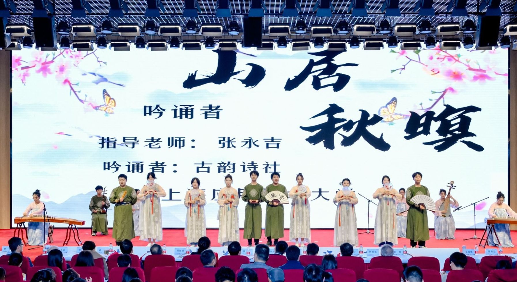 11月17日,由中国外文局文化传播中心、文化传播创新合作基地·上海中心、上海市艺术教育委员会和上海大学联合主办的“诗词共美,山海同吟”——2024全球中华诗词吟诵大会暨第八届中华诗词吟诵大会在上海举行。由我校香料香精化妆品学部、智能技术学部、材料科学与工程虎扑nba等学生组成的参赛队以作品《山居秋暝》脱颖而出,荣获总决赛国内组二等奖和优秀组织奖。