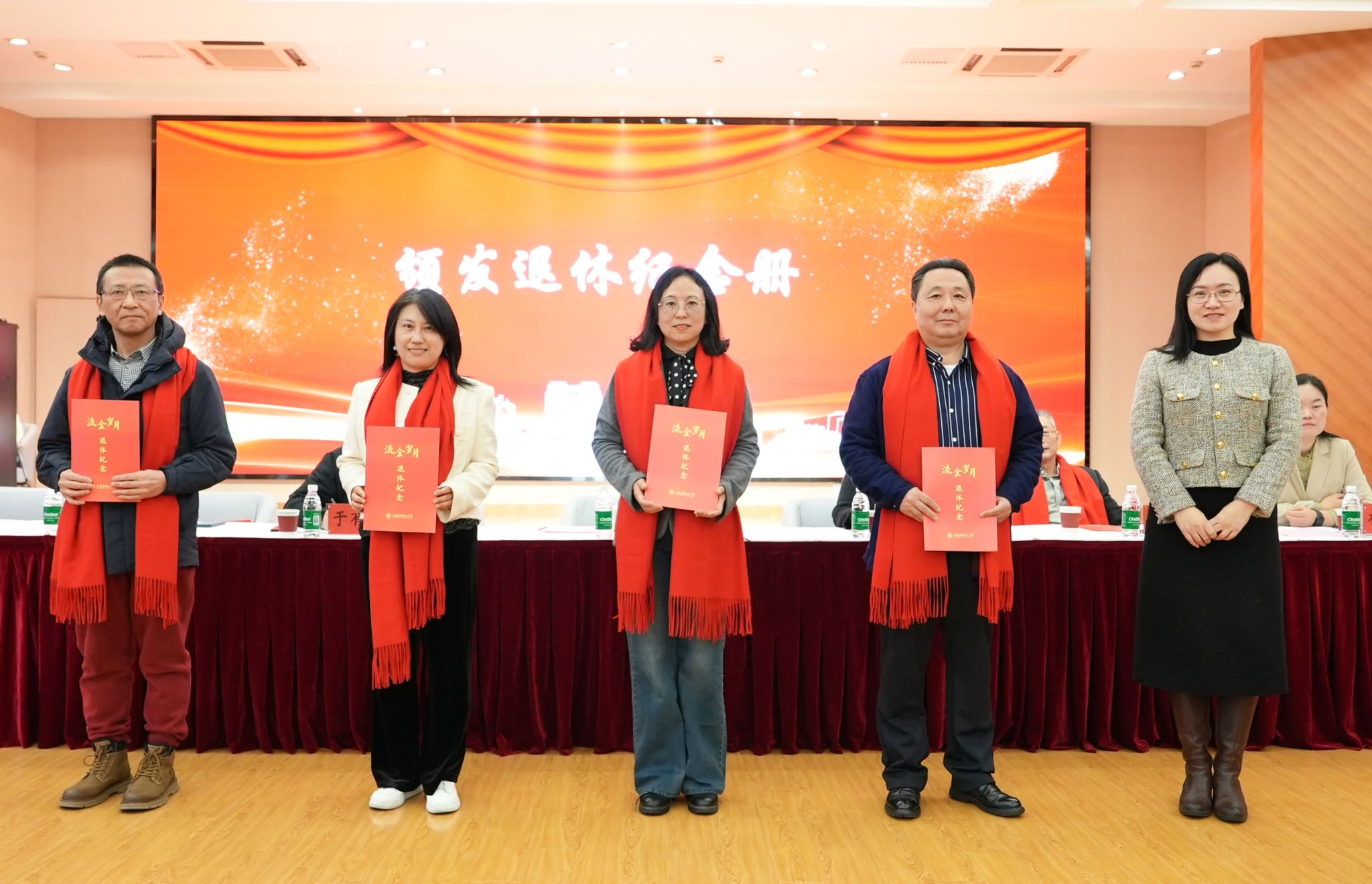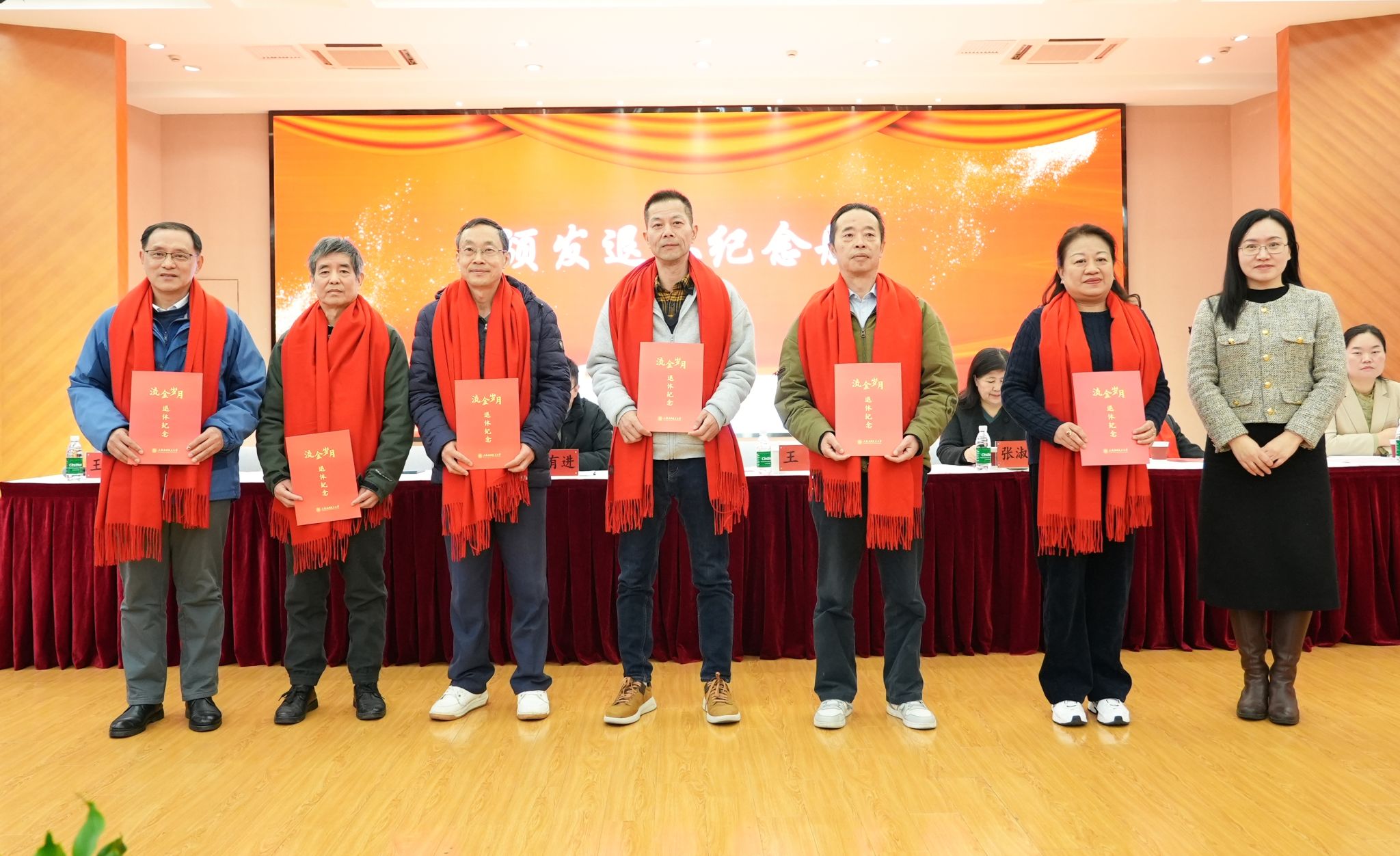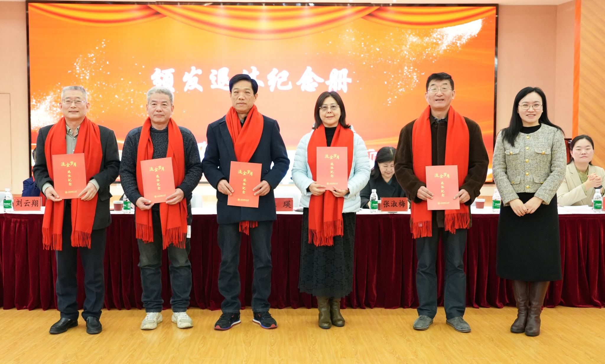 校领导为每一位退休教职工颁发校工会精心制作的退休纪念册。校工会副主席王乐全代表广大教职工向退休教职工致答谢词。