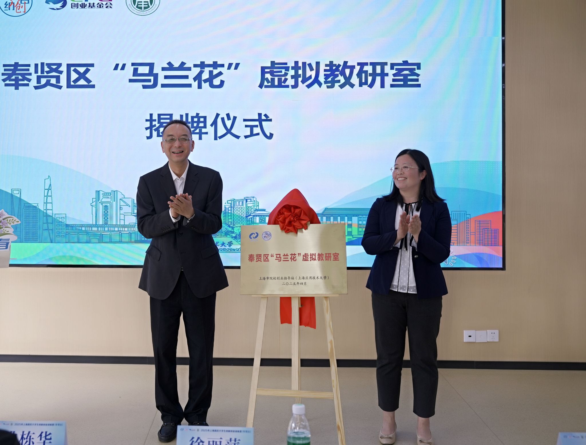 仪式,奉贤区“马兰花”虚拟教研室正式揭牌。这个由政校企三方共建的数字化教研平台,汇聚联合教研、课程共享、企业对接、模拟实践等多元支持,未来将通过云端共享实现教育资源跨校辐射,为奉贤高校创新创业人才的培养注入新的动力。现场为上海市创业指导专家颁发聘书和训练营授旗。我校智能技术学部学生孙本皓作为创业代表现场展示了创业成果。