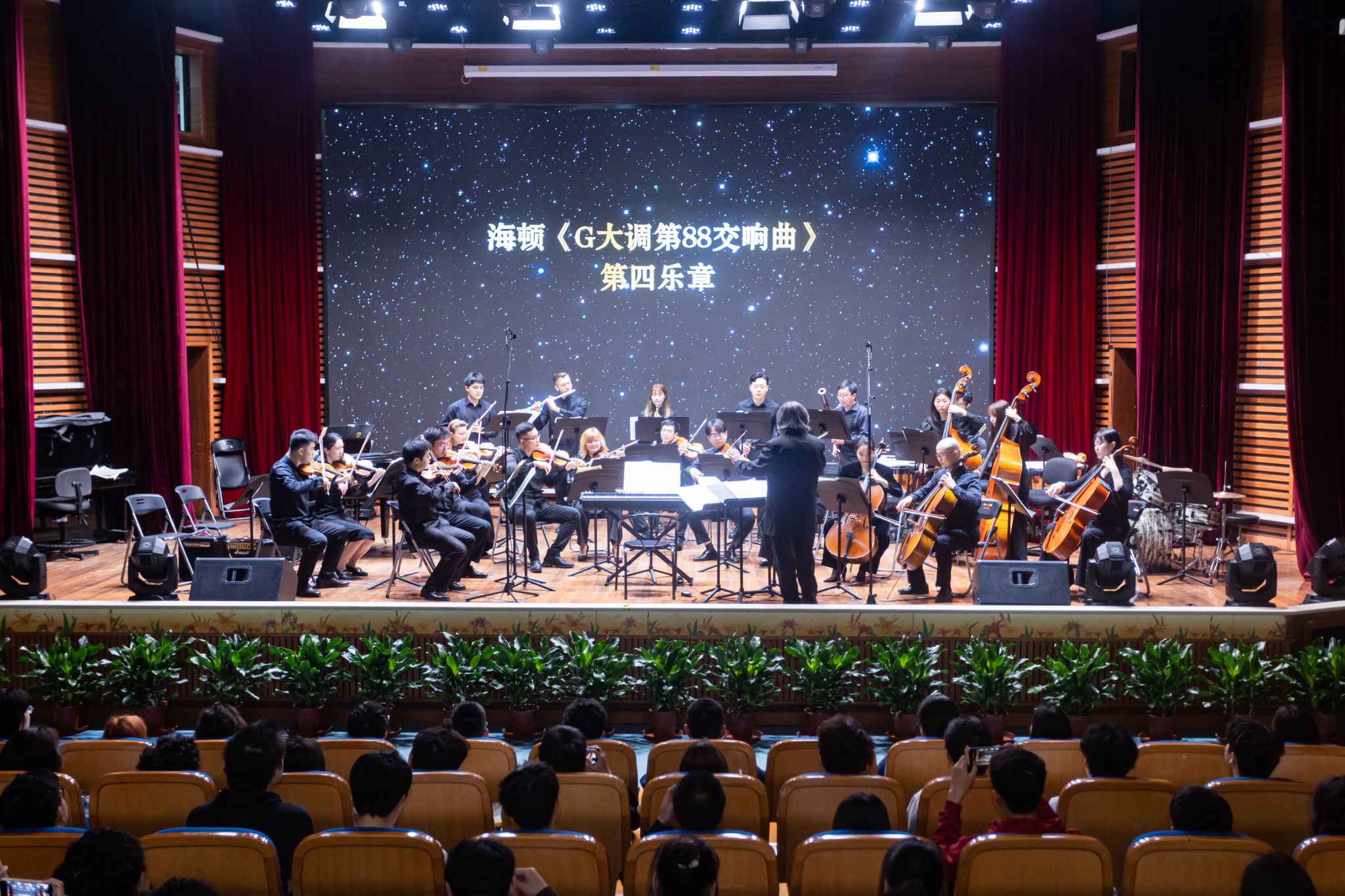 春光无限好,时光美如画。4月19日上午,为庆祝上海应用技术大学71周年校庆,上海九棵树爱乐乐团在奉贤校区上演了一场精彩纷呈的专场音乐会。本场音乐会由全球华人首位格莱美音乐奖获得者、原柏林爱乐乐团指挥汤沐海先生执棒,带领乐团演奏古今中外的交响乐曲,为在校师生献上了一场音乐盛宴。校党委书记郭庆松,党委副书记、副校长王瑛,党委常委、党委宣传部部长杨明及虎扑nba中层干部代表、毕业生校友、师生代表一同观看了演出。
