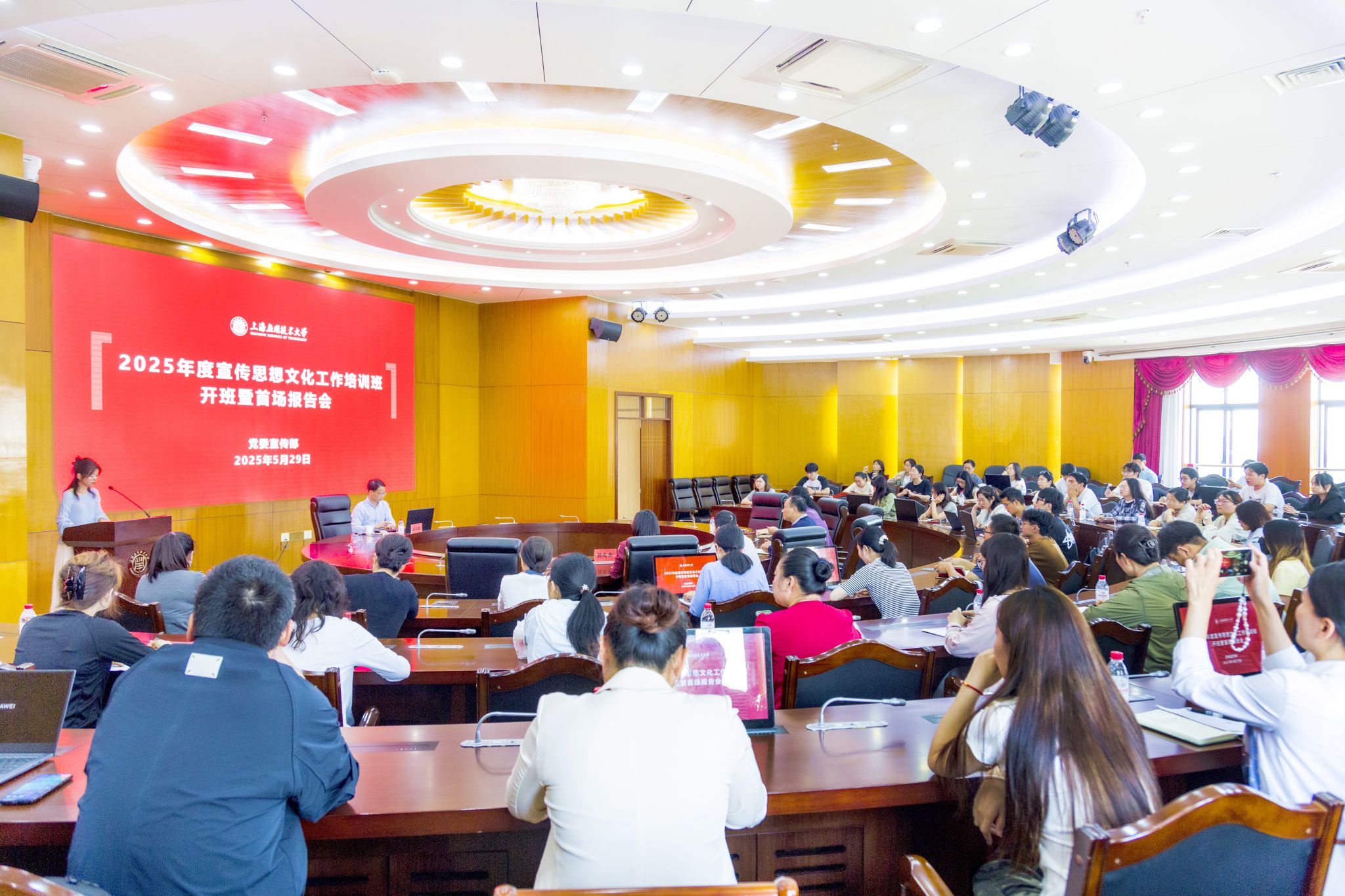 5月29日,“思想引领?智媒赋能?融合创新“上海应用技术大学2025年度宣传思想文化工作专题培训班正式开班并举行首场报告会。解放日报城事频道总监王仁维应邀作首场专题报告。校党委常委、宣传部部长杨明出席。会议由党委宣传部副部长吕客主持。