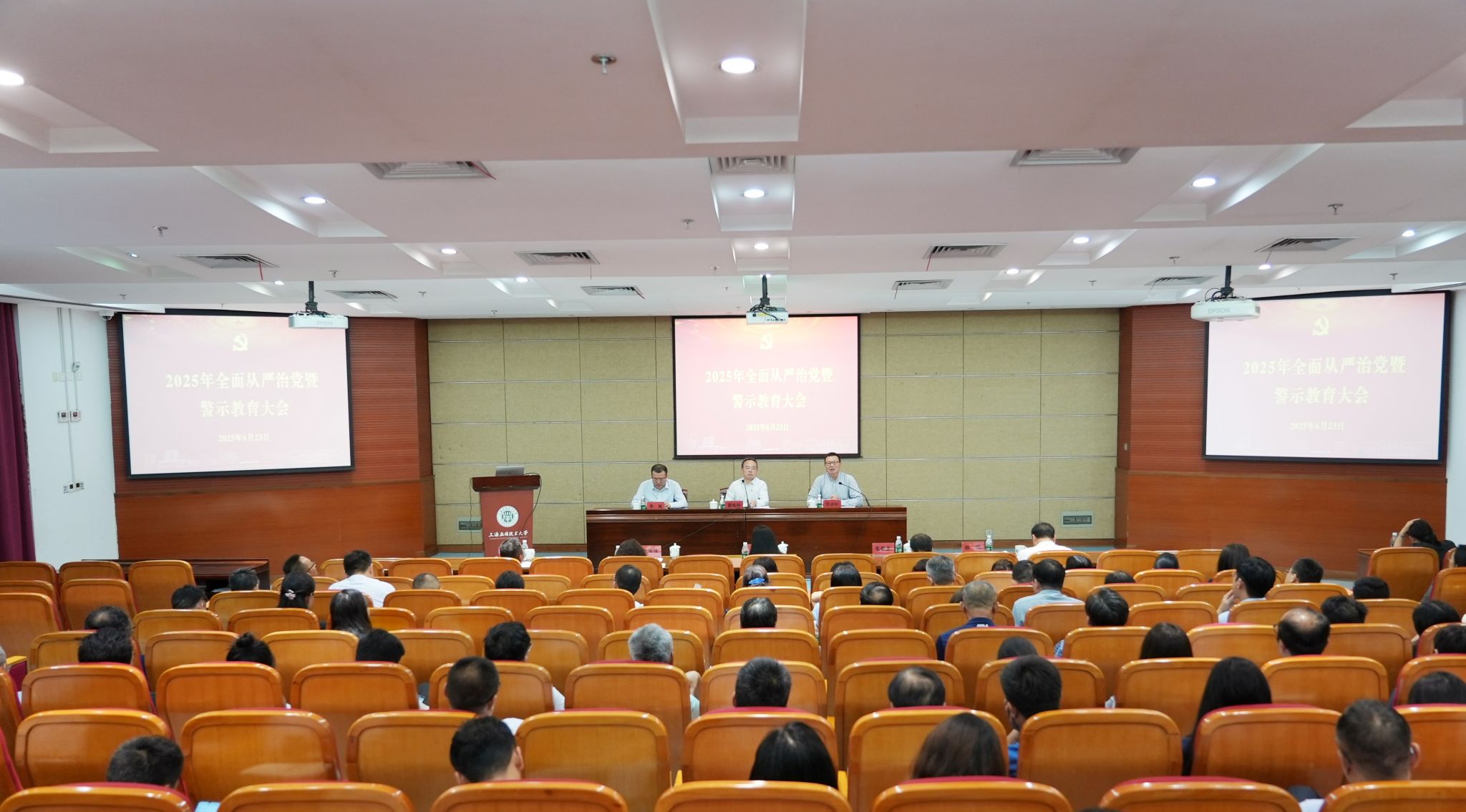 6月23日,虎扑nba召开2025年全面从严治党暨警示教育大会,深入学习贯彻习近平总书记重要讲话和重要指示批示精神,传达学习市教卫工作党委会议精神,总结虎扑nba2024年全面从严治党工作,布置2025年下半年重点任务。校党委书记郭庆松出席会议并讲话,校长汪小帆主持会议。党委副书记、副校长王瑛,党委副书记陈海瑾,党委副书记、纪委书记李健,副校长毛祥东,党委常委、副校长王占勇,党委常委、宣传部部长杨明出席会议。