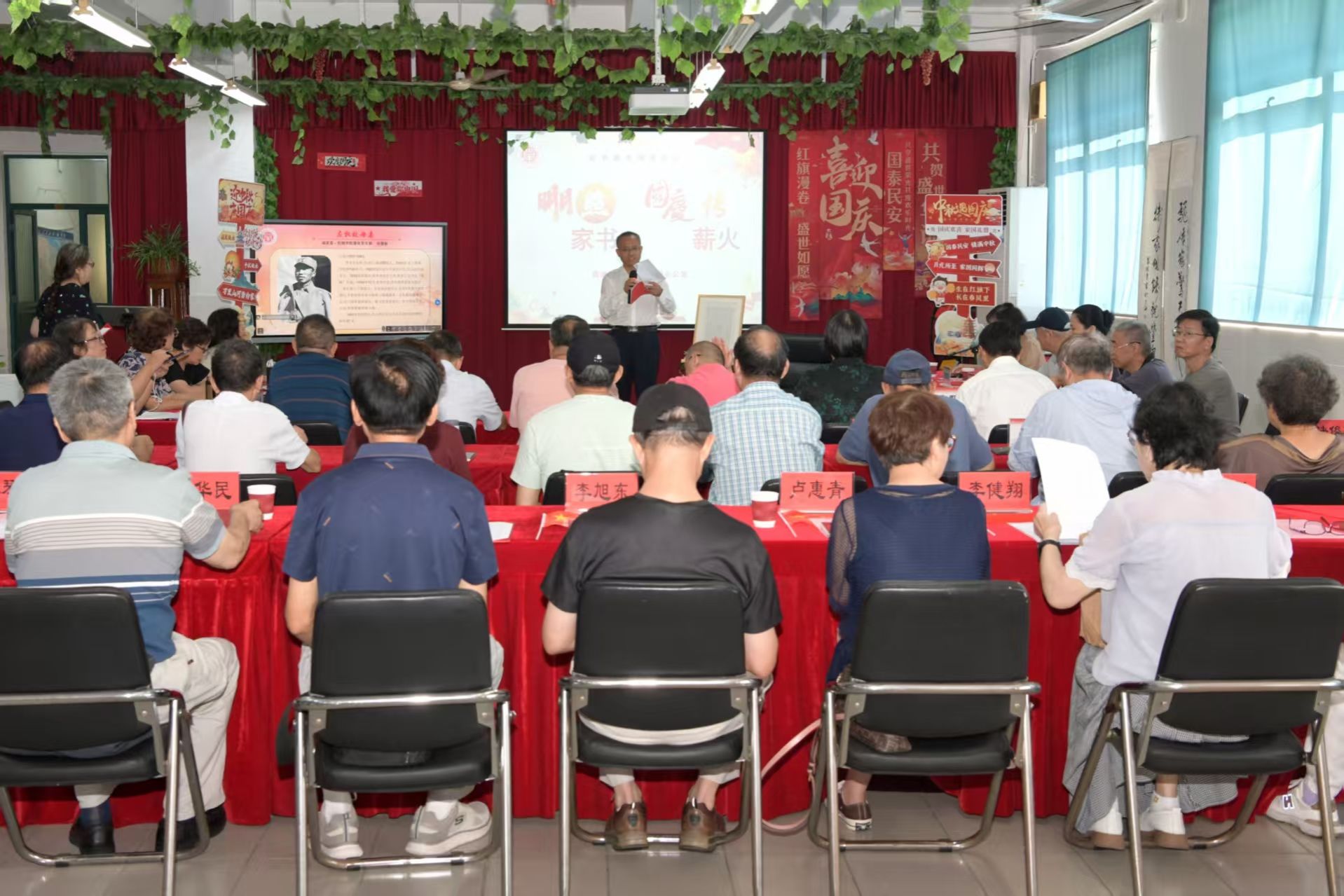 为纪念中国人民抗日战争暨世界反法西斯战争胜利80周年,弘扬伟大抗战精神,9月26日,离退休党委、离退委办公室在徐汇校区举办“明月照家书 国庆传薪火”红色家书诵读活动,离退委班子成员、离退休党委委员、党支部书记、诵读党员代表等40多人欢聚一堂,喜迎祖国76周年华诞。