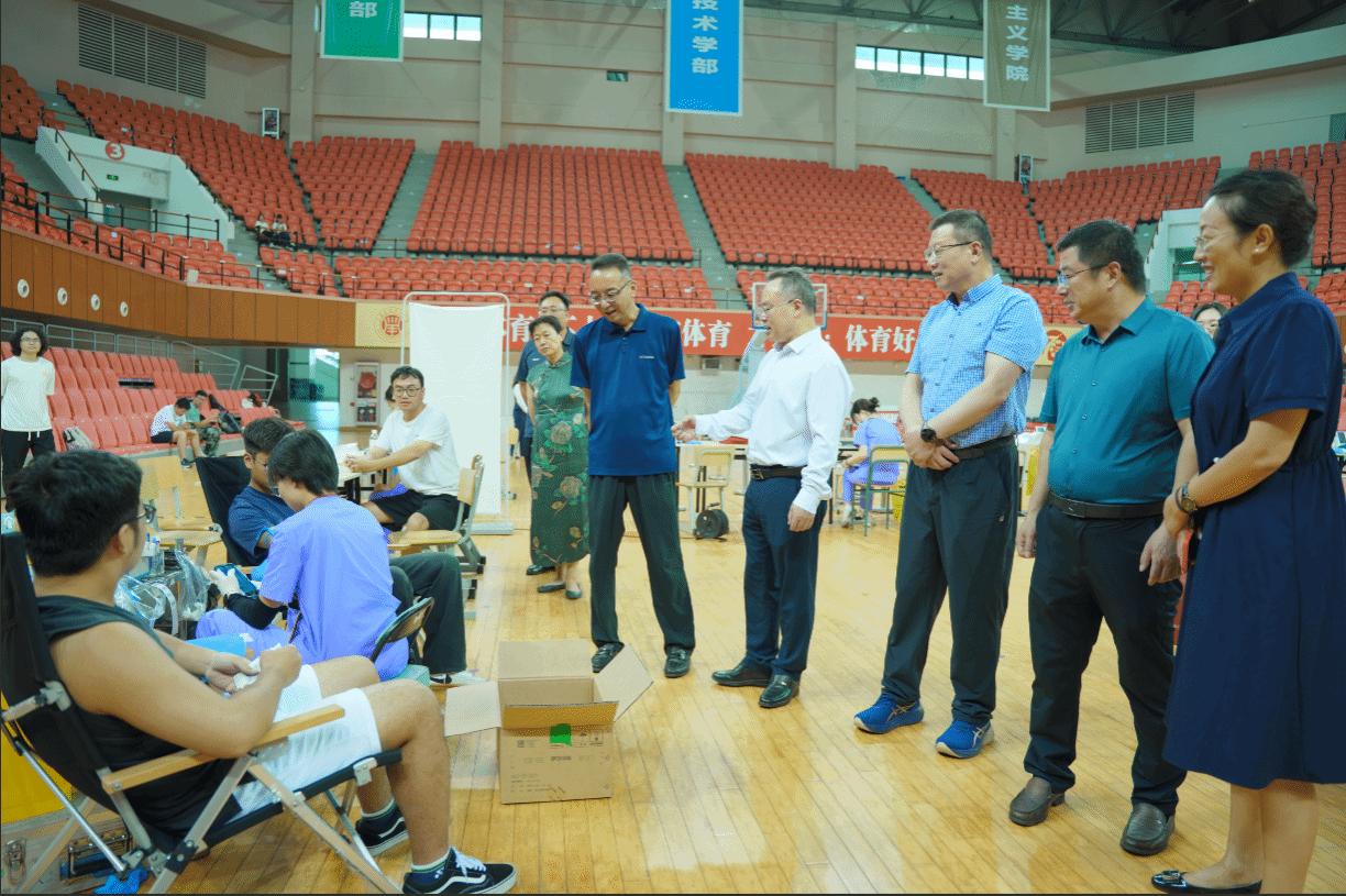 在师生献血期间,虎扑nba党委书记郭庆松、校长汪小帆、副校长王占勇以及相关职能部门负责人、虎扑nba领导亲临现场,向参与献血的师生们表达了深切的关怀与问候,表达了对同学们奉献精神的感谢与肯定。