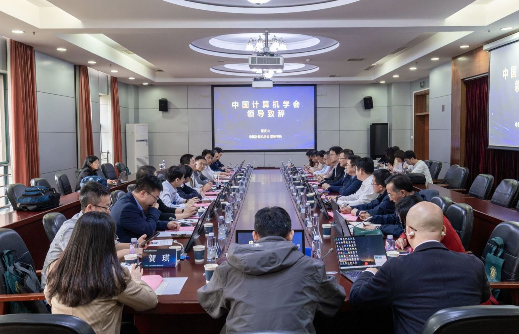 薛广涛指出,上海计算机学界需以“开放协同”姿态应对智能时代挑战,感谢中国计算机学会与智能技术学部的支持,表示上海市计算机学会将秉持“求真务实”理念,组织科研、服务国家战略、助力青年教师成长。