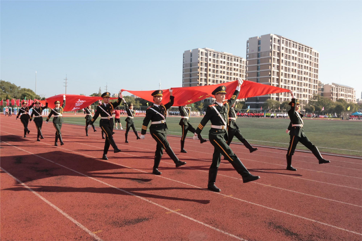 开幕式上举行了隆重的升旗仪式。随后,国旗护旗队、校旗护卫队、鲜花方队、红旗方队逐一登场,22支代表队依次入场。整齐铿锵的步伐,自信洋溢的笑容,展示出上应师生火热澎湃的激情与昂扬蓬勃的朝气。