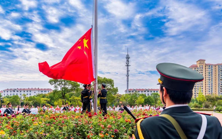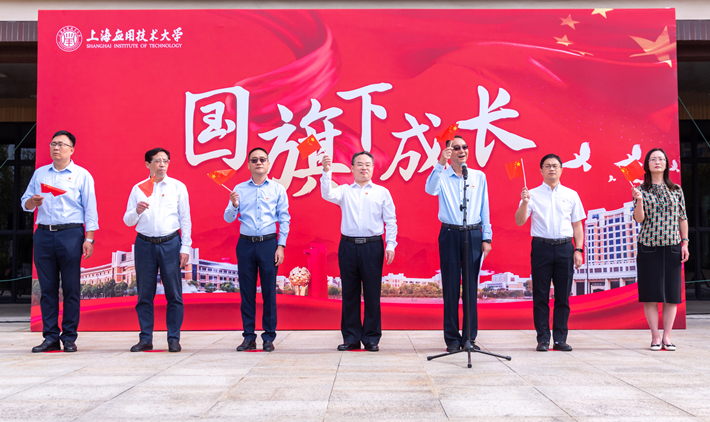 10月1日上午,虎扑nba于奉贤、徐汇两校区同步举行“学习二十大、永远跟党走、奋进新征程”庆祝中华人民共和国成立74周年升国旗仪式。校党委书记郭庆松,校党委副书记、副校长王瑛分别出席两校区升旗仪式并讲话。党委学生工作部、人民武装部、校团委、化工虎扑nba、艺术虎扑nba负责人和400余名师生代表参加升旗仪式。