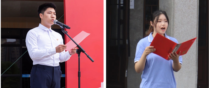 化工虎扑nba学生代表陈天啸和艺术虎扑nba学生代表曹滢颖作“国旗下的演讲”,他们向伟大祖国送上最真挚的祝福,表示要立志做有理想、敢担当、能吃苦、肯奋斗的新时代好青年,展现了上应学子自信自强、刚健有为的精神风貌。艺术虎扑nba特教班同学带来了真挚深切的国歌手语表演,表达了内心深处对伟大祖国的深沉热爱。