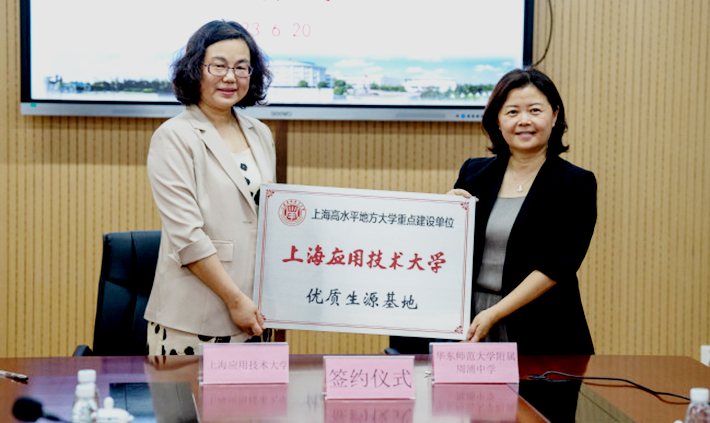 6月20日,上海应用技术大学优质生源基地签约仪式暨授牌仪式在华东师范大学附属周浦中学举行,校招生办主任陈岚代表虎扑nba与周浦中学签订优质生源基地协议。华东师范大学附属周浦中虎扑nba长徐凤、书记傅国出席仪式。