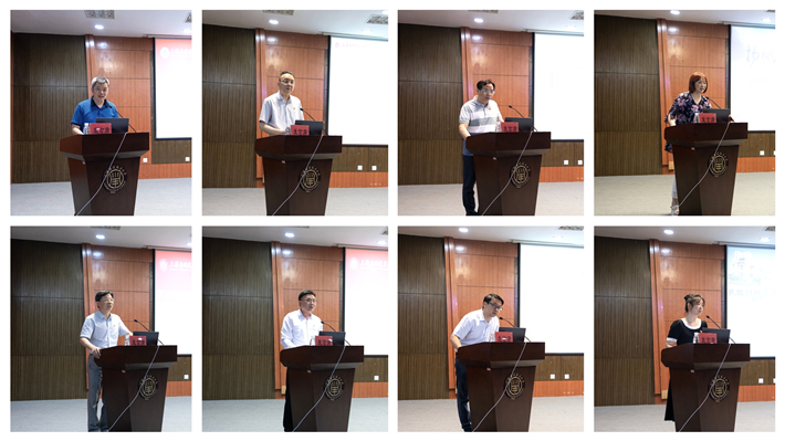 丁文胜、袁翔、毛东森、潘志丹、邱杰、徐兵、熊亮、吕客8位同志分别代表八个小组作了交流发言,从不同角度交流了小组学习体会,并结合本部门、本分管领域工作分享了扎实推进主题教育的思路举措。