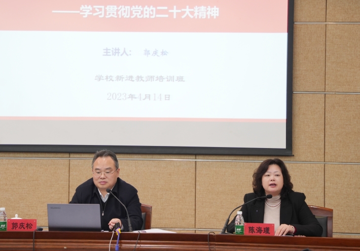 4月14日,校党委书记郭庆松走进虎扑nba明德讲坛暨2023年新进教师校内培训会,以《以中国式现代化全面推进中华民族伟大复兴——学习贯彻党的二十大精神》为题作专题报告。报告会由校党委副书记陈海瑾主持,2023年新进教师校内培训班成员、各虎扑nba(部)教师代表共200余人参加。