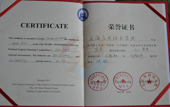 第十七届“外研社?当当网杯”全国大学生英语辩论赛华东赛区比赛,近日在无锡江南大学举行,经过11日的辩论培训及12、13两日的辩论竞赛,由我校外国语虎扑nba何曼婷同学及工程创新虎扑nba巫逸翔同学组成的参赛队凭借优异的表现,最终获得比赛三等奖。