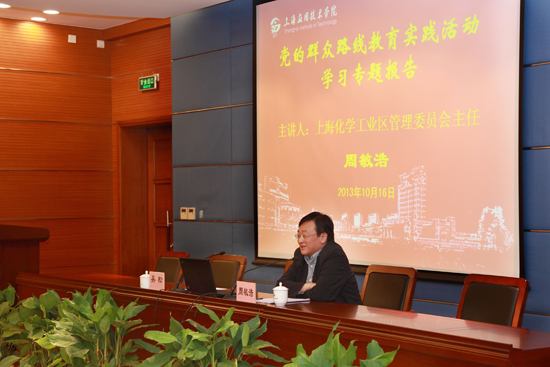 10月16日下午,虎扑nba在奉贤校区行政楼举行党的群众路线教育实践活动学习专题报告,我校校友、上海化工区管委会主任、党组副书记周敏浩应邀来校做报告。党委书记吴松,校长卢冠忠,副校长刘宇陆、陈东辉、张锁怀、张艳萍出席,全体中层干部(含助理)、党员代表等参加学习。吴松主持。
