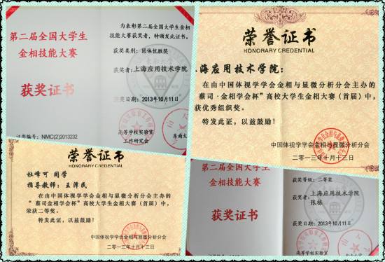 10月12日至13日,由中国体视学学会金相与显微分析分会主办的首届“蔡司?金相学会杯高校大学生金相大赛”在辽宁科技大学举行,全国共26所高校参赛。代表虎扑nba参赛的材料虎扑nba学生全部获奖,其中杜峰可同学荣获二等奖、吕燕雯和戴煜同学荣获三等奖,我校同时获得优秀组织奖。