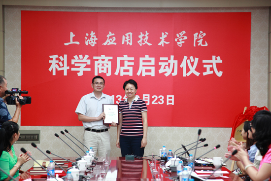 9月23日下午,我校科学商店启动仪式在图书馆B103隆重举行。副校长叶银忠、张艳萍出席仪式。市科普教育促进中心主任郁增荣、市教委体卫艺教处副处长丛海鹰、市科委科普处主任科员俞琪国、市教委体卫艺教处主任科员谢俊应邀参加活动。
