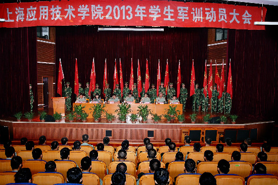 9月2日上午,我校2013级新生军训动员大会在奉贤校区大学生活动中心举行,副校长叶银忠,副校长、军训领导工作小组组长张艳萍,军训团团长唐兵,校武装部长、军训团副团长刘广龙,校学工部长、军训团副团长翁德玮出席军训动员大会。叶银忠主持大会。来自“南京路上好八连”所在部队——上海警备区特警团73181部队的教官与参训新生参加了动员大会。